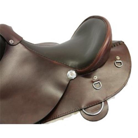The Ord River Half Breed Poley Saddle is expertly designed to provide the best of both worlds in comfort for horse and rider. Featuring swinging fenders attached directly to a full fibreglass tree, this saddle allows for optimal leg movement, making it a favourite among campdraft competitors and outback stockmen. Its deep seat and secure design ensure stability during long rides, while the gullet measures approximately 6.5" between the D rings for a versatile fit. Please note that Oxbow stirrups are not included and must be purchased separately.