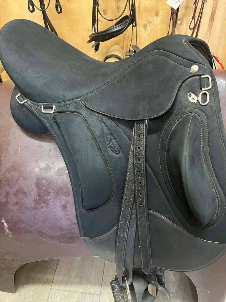 Fully mounted, includes mounts, leathers, irons, black cages, collegiate contoured 2 point girth, changeable gullet system - inc blue gullet, wintec cover for saddle.
